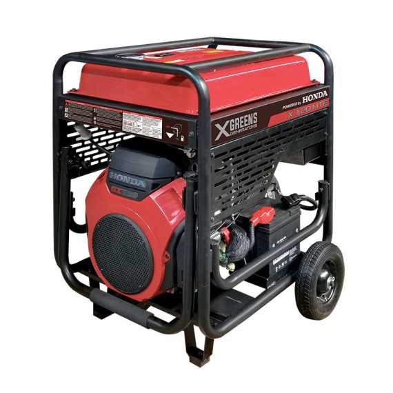 Generador XGREENS™ trifásico polivalente X120MTE de 10 KVA (10000VA) Equal Power, con motor de arranque eléctrico Honda, robusto y resistente, para industria y construcción. Depósito extra grande, tecnología AVR, ruedas de transporte y diseño compacto.